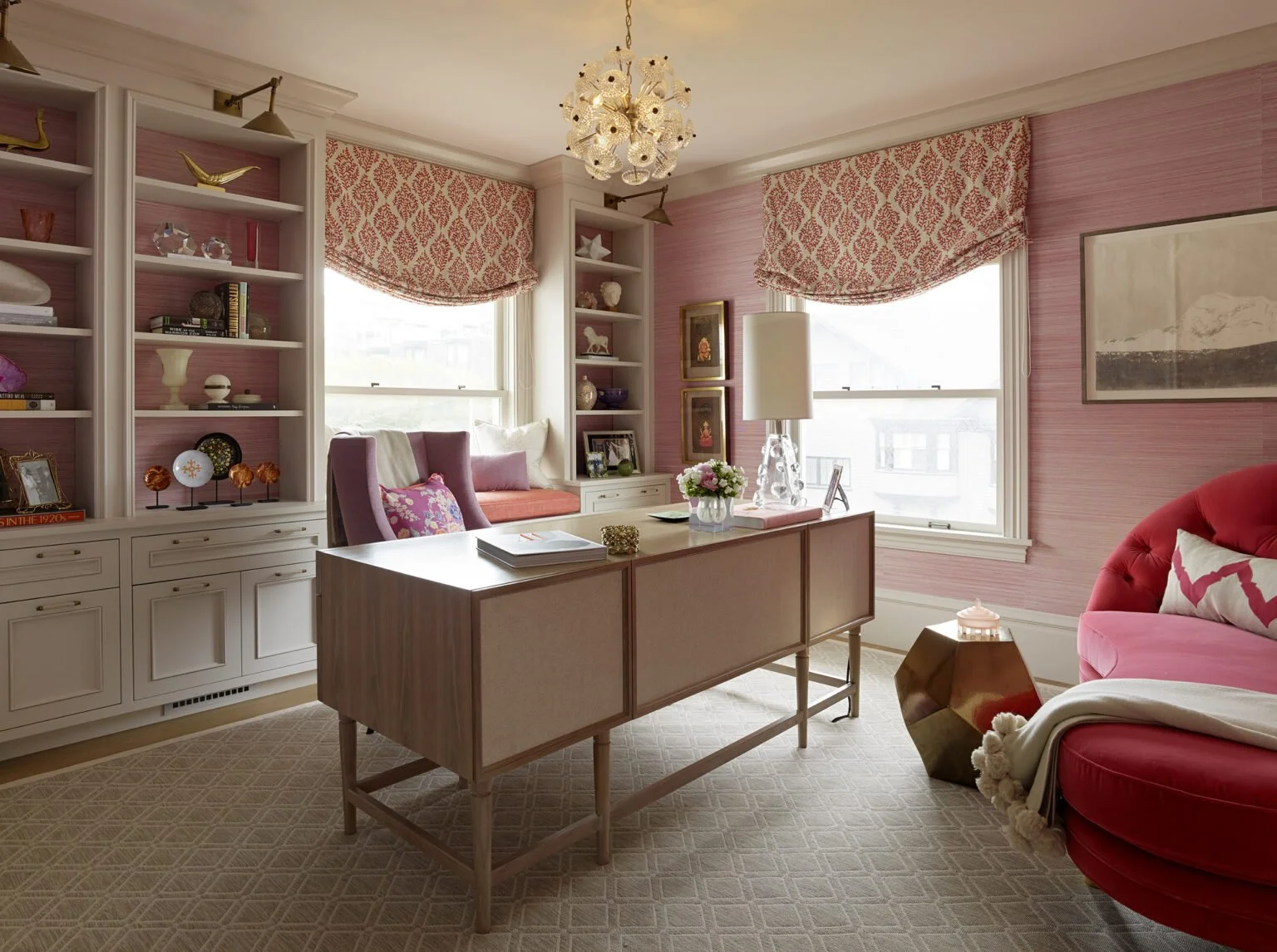 We fabricated and installed all the millwork and built-in furniture for this fantastic home in Cow Hollow. Designed by Jay Jeffers, there were subtle, challenging details throughout that led to a bold, sophisticated feel at the finish. Curved pieces, custom internal casework organization, wallpaper that was carried through from the walls into the cabinetry were just some of the special touches that made this project so memorable.
